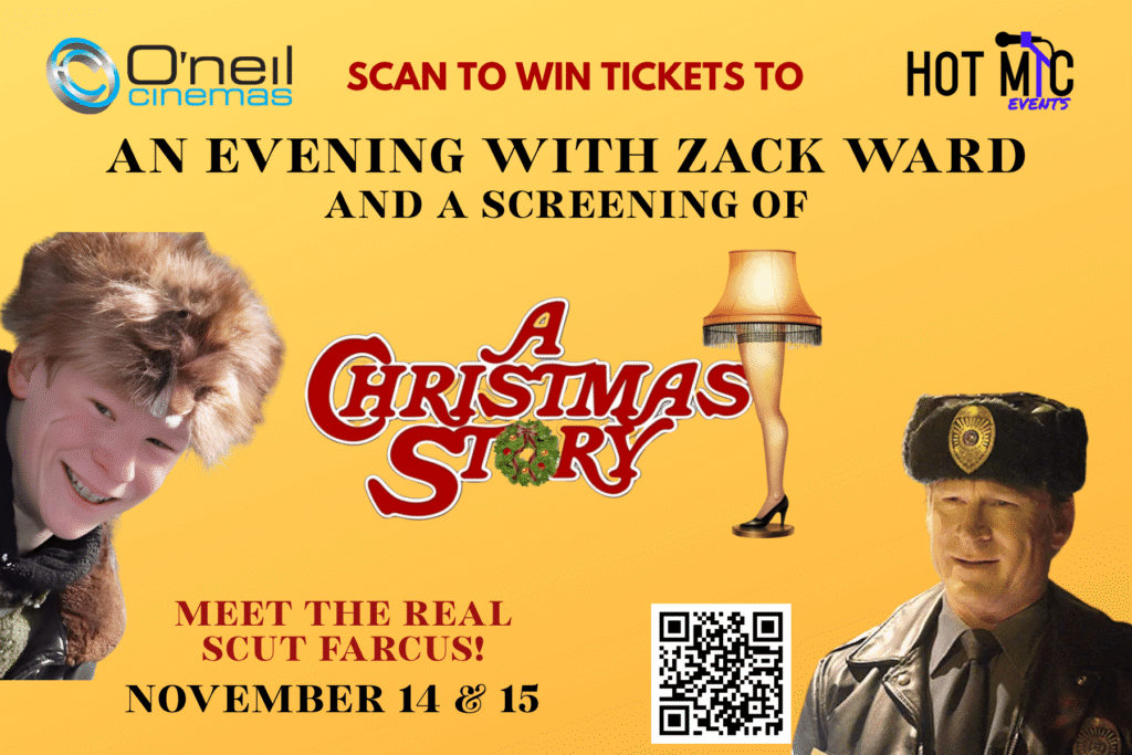 Fill out the form below to win tickets to see Zack Ward November 14 or 15 at O’Neil Cinemas!  One winner will be chosen to win 2 tickets to the show!