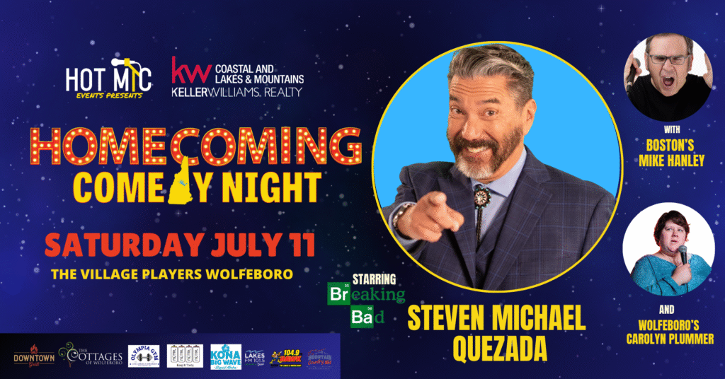 Featuring Wolfeboro’s own Carolyn Plummer, Boston’s Mike Hanley and our headliner from the #1 Hit TV show of all time: Breaking Bad’s Steven Michael Quezada